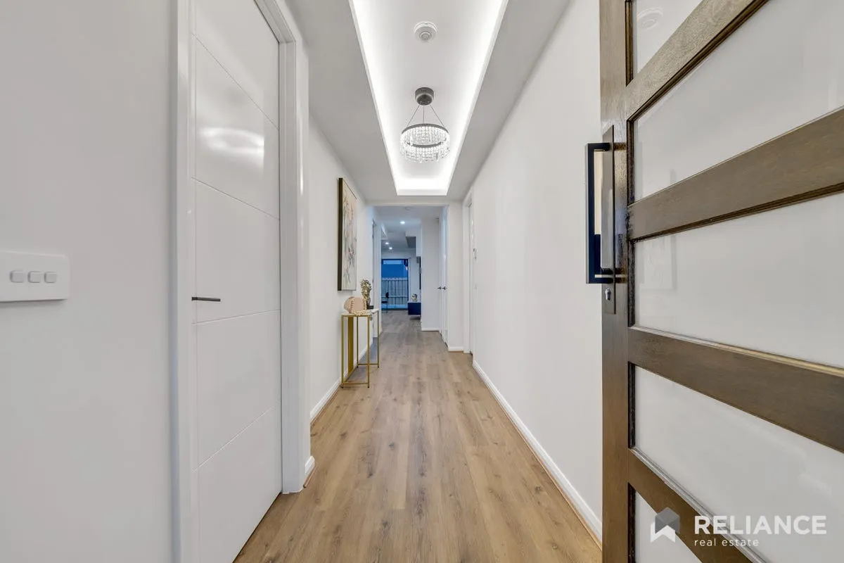 As you step inside, you are greeted by a home that exudes sophistication and elegance. The spacious floor plan encompasses two distinct living areas, featuring a formal lounge for intimate gatherings and a vast open-plan living and dining space that seamlessly integrates with a state-of-the-art kitchen.